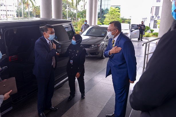 Hadir sama menyambut ketibaan, YB Penasihat Undang-Undang Negeri, Tuan Azmir Shah bin Zainal Abidin; YB Pegawai Kewangan Negeri, Dato’ Zulazlan bin Abu Hassan; Datuk Bandar Ipoh, YBhg. Dato’ Rumaizi bin Baharin dan Pengarah Tanah dan Galian Negeri Perak, Dato’ Mohd Fariz bin Mohd Hanip.