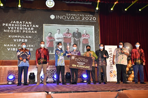 Dalam majlis tersebut, YAB Menteri Besar Perak, Dato’ Seri Ahmad Faizal bin Dato’ Azumu turut menyampaikan Anugerah Utama Inovasi 2020 Negeri Perak kepada Kumpulan Viper daripada Jabatan Veterinar Negeri Perak yang telah membawa pulang wang tunai RM5,000.00 dan trofi.