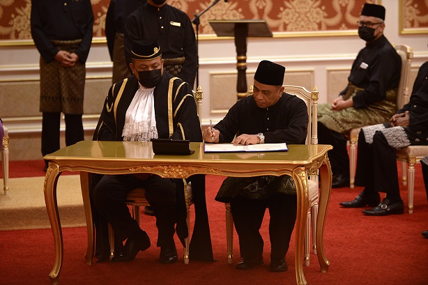 DYMM Paduka Seri Sultan Perak menyampaikan watikah pelantikan YAB Menteri Besar Perak.