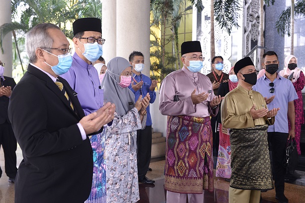 Upacara ringkas yang dimulai dengan majlis bacaan doa dan sesi bergambar diadakan bagi menyambut YAB Menteri Besar yang juga Ahli Dewan Undangan Negeri (ADUN) Kota Tampan itu.
