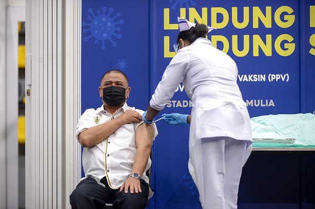 IPOH, 1 Mac 2021 — YAB Menteri Besar Perak, Dato’ Saarani Mohamad menjadi individu terawal yang menerima suntikan vaksin Covid-19 di Pusat Pemberian Vaksin (PPV) Stadium Indera Mulia menerusi Program Imunisasi Covid-19 Kebangsaan peringkat Negeri Perak.