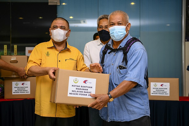 “Jabatan Perikanan Perak dengan bantuan sokongan daripada pejabat-pejabat daerah dan pemimpin komuniti setempat akan mengedarkan kotak bantuan makanan kepada penerima-penerima yang layak.