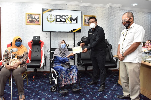 IPOH, 3 Ogos 2021 : YB Pengerusi Jawatankuasa Belia, Sukan, Komunikasi dan Multimedia Negeri, Encik Khairul Shahril bin Mohamed menyampaikan cek bantuan sumbangan kebajikan bekas atlet negeri Perak