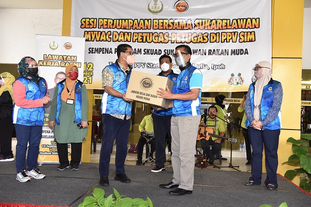 “Di negeri Perak, saya dimaklumkan Jabatan Belia dan Sukan Negeri Perak telah menugaskan seramai 979 orang sukarelawan di 25 buah Pusat Pemberian Vaksin seluruh negeri. PPV Stadium Indera Mulia mempunyai jumlah petugas sukarelawan MyVAC paling ramai di negeri Perak iaitu seramai 45 orang sehari dengan purata sebanyak 3,000 dos sehari,” jelas beliau.