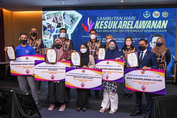 Fauzi Acho dari Sabah menerima Anugerah Ikon Sukarelawan Lelaki dan Puteri Seri Mawar Megat Abdul Rahmani dari Kedah menerima anugerah Sukarelawan Wanita 2021 manakala Nermesh Singh a/l Gurbish Singh dari Perak menerima Anugerah Khas Sukarelawan 2021.