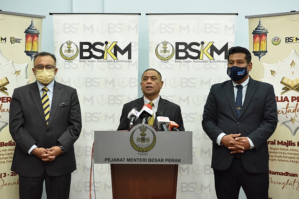 YAB Menteri Besar Perak ketika berucap di majlis pelancaran itu yang turut diiringi oleh YB Setiausaha Kerajaan Negeri dan YB Pengerusi Jawatankuasa Belia, Sukan, Komunikasi dan Multimedia