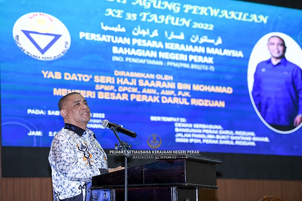 YAB Menteri Besar Perak, Dato’ Seri Saarani Mohamad memaklumkan perkara itu dalam ucapannya semasa merasmikan Mesyuarat Agong Perwakilan ke-35 Tahun 2022 PPKM di Bangunan Perak Darul Ridzuan.