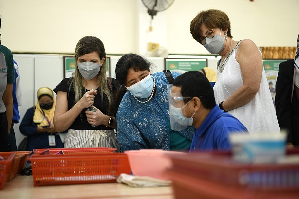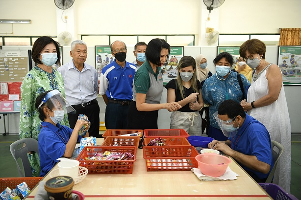 “Kami melatih para pelajar kami dalam pelbagai bidang seperti kraftangan, pertanian, pembuatan sarung kaki, pemasangan dan pembungkusan serta pembersihan am,” jelasnya semasa sesi lawatan tersebut.