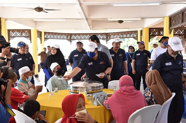 Setelah itu, beliau bersama para tetamu menyampaikan sumbangan barangan keperluan kepada 20 keluarga asnaf di sekitar Kampung Gajah.