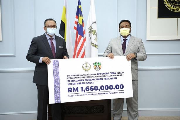 IPOH, 4 Julai 2022- Kerajaan Negeri Perak telah menerima sumbangan sebanyak 352 ekor lembu korban bernilai RM2,632,000 daripada Syarikat-syarikat Berkaitan Kerajaan (GLC) Negeri Perak.