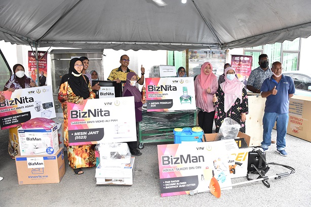 “Di bawah BizNita dan BizMan, penerima akan menerima bantuan peralatan bernilai maksimum   RM3,000 seorang dan antara peralatan yang dibekalkan adalah mesin jahit lurus, peralatan memasak dan bakeri, mesin rumput, mesin kopi dan peralatan menggunting rambut,” katanya.