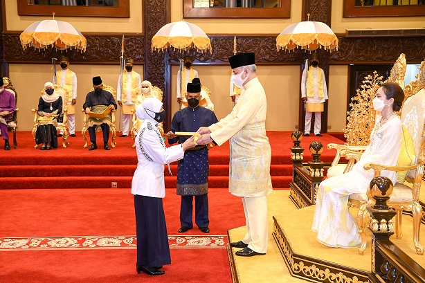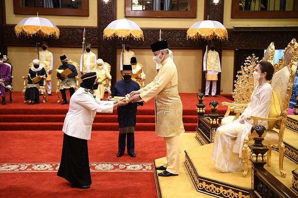 Antara penerima pada isitiadat kali ini adalah YBrs. Timbalan Pengarah Kesihatan (Perubatan), Dr. Norisah Mahat Noor yang dianugerahkan Darjah Paduka Cura Si Manja Kini (PCM).