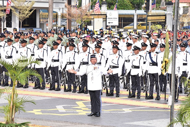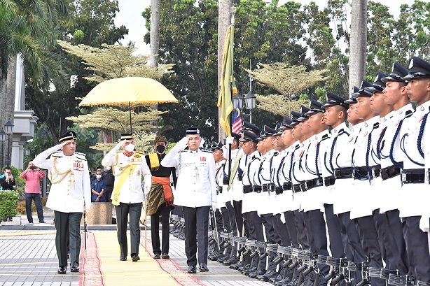DYMM Paduka Seri Sultan Perak berkenan memeriksa kawalan kehormat.