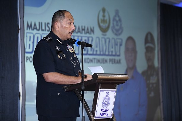 Simbolik penyerahan bot tersebut telah disempurnakan oleh YAB Menteri Besar Perak, Dato’ Seri Saarani Mohamad semasa Majlis Penyerahan Bot Penyelamat Polis Diraja Malaysia (PDRM) Kontinjen Perak di Mes Pegawai Kanan Polis, pagi ini.
