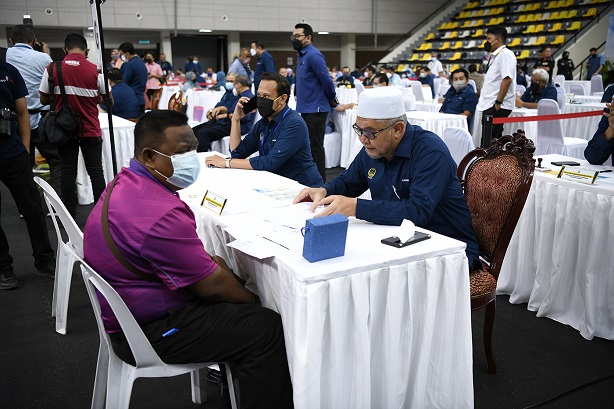 Orang ramai sedang menunggu giliran untuk berjumpa dengan YAB Dato' Seri Saarani Mohamad untuk membuat aduan dan pelbagai masalah