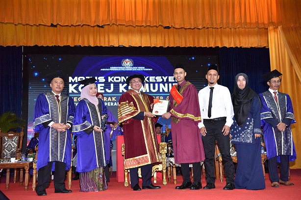 Beliau turut mengucapkan tahniah kepada 973 graduan daripada 13 buah Kolej Komuniti di Perak yang berjaya menerima Lulusan Diploma dan Sijil Kolej Komuniti.