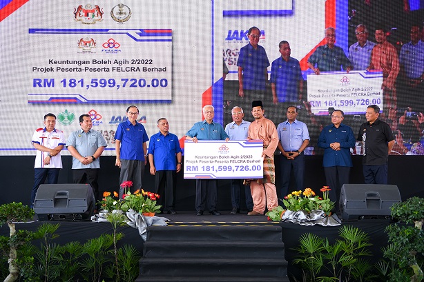 TAPAH, 17 Oktober 2022- YAB Perdana Menteri, Dato’ Sri Ismail Sabri Yaakob mengumumkan sumbangan Keuntungan Boleh Agih 2/2022 Projek Peserta-Peserta Felcra Berhad, Dividen Tanam Semula Komersial Risda 2022 dan pemberian one-off RM1,000 kepada Tok Batin dan Penghulu.