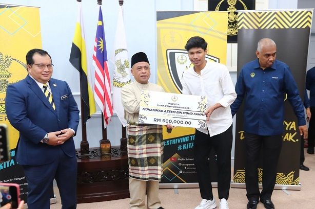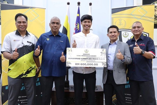 IPOH, 30 Disember 2022- Kerajaan Negeri Perak menyampaikan dana pendidikan sebanyak RM600,000 kepada atlet Sukan Olahraga, Muhammad Azeem Mohd Fahmi yang telah mengharumkan nama negara sebagai pelari ke-5 terpantas remaja dunia bawah 20 tahun ketika menyertai Kejohanan Olahraga Remaja Dunia di Cali, Colombia.