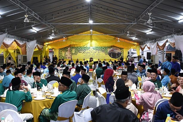 DYMM Paduka Seri Sultan Perak seterusnya mencemar duli berbuka puasa bersama lebih 500 orang jemaah dan menunaikan solat Maghrib sebelum berkenan berangkat ke majlis santapan, diikuti dengan solat Isyak serta solat Terawih.