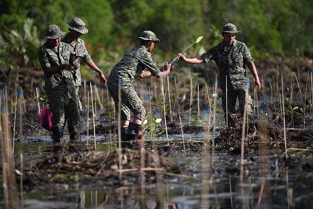 Program diteruskan lagi dengan aktiviti penanaman anak pokok bakau di Hutan Simpan Tanjung Burung.