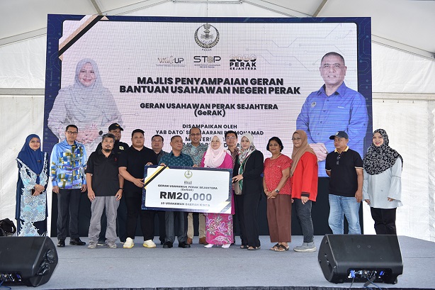 Di samping itu, beliau menyempurnakan Majlis Penyampaian Geran Usahawan Perak (GeRAK) dan Geran Pembangunan dan Peningkatan Rekabentuk Pembungkusan Produk Usahawan Perak 2023.