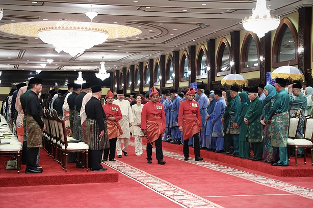 DYMM Paduka Seri Sultan Perak Darul Ridzuan dan DYMM Raja Permaisuri Perak Darul Ridzuan ketika Istiadat Penganugerahan Darjah Kebesaran dan Pingat Negeri Perak