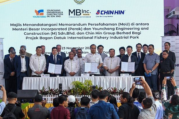 "Malah, saya berkesempatan menyaksikan Majlis Menandatangani Memorandum Persefahaman (MoU) di antara syarikat Kerajaan Negeri, Perbadanan Menteri Besar Perak (MB Inc.) dan Younchang Engineering and Construction (M) Sdn. Bhd. dan Chin Hin Group Berhad bagi cadangan Projek Bagan Datuk International Fishery Industrial Park.