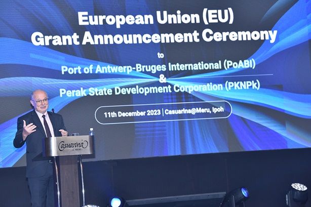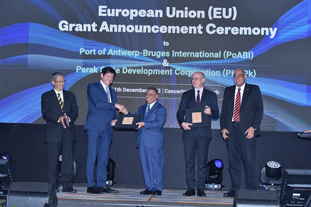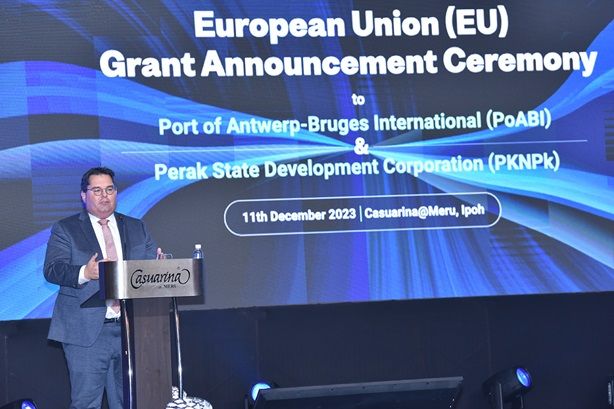 IPOH, 11 Disember 2023- Kesatuan Eropah (EU) telah menyalurkan geran berjumlah RM9.5 juta kepada Port of Antwerp-Bruges International (PoABI) dan Perbadanan Kemajuan Negeri Perak (PKNPk) bagi menjalankan kajian terhadap sektor pelabuhan dan maritim di negeri Perak.
