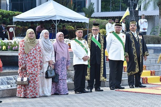 Keberangkatan tiba baginda disambut oleh YAB Dato' Seri Saarani bin Mohamad_ YB Dato’ Mohammad Zahir bin Dato’ Abdul Khalid serta YB Dato’ Ahmad Suaidi bin Abdul Rahim