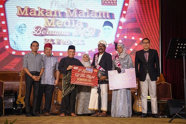 IPOH, 24 Februari 2024 - Seramai 21 orang media menerima anugerah pelbagai kategori pada Majlis Makan Malam Media Bersama Menteri Besar yang berlangsung di Dewan Bankuet, Bangunan Perak Darul Ridzuan dengan menghimpunkan 70 orang pengamal media malam ini.