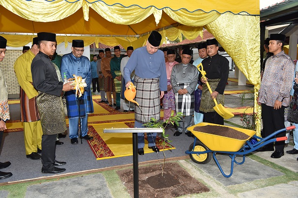 Di majlis berkenaan baginda berkenan menanam pokok Bunga Tanjung atau mimusops elengi dan seterusnya membuka tirai plak sebagai simbolik perasmian masjid tersebut.