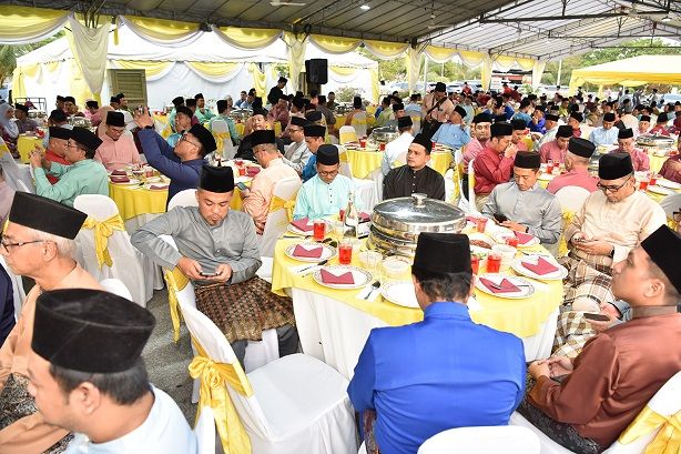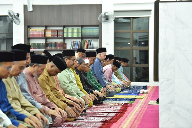 Baginda turut berkenan berbuka puasa bersama lebih 500 orang jemaah dan menunaikan solat Maghrib sebelum berkenan berangkat ke majlis santapan, diikuti dengan solat Isyak serta solat Terawih.