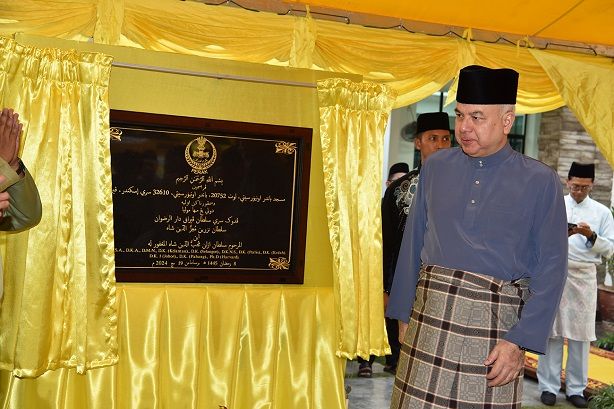 Baginda berkenan membuka tirai plak sebagai simbolik perasmian masjid tersebut