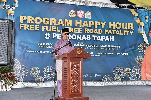 Dalam perkembangan sama, Majlis Keselamatan Jalan Raya (MKJR) Negeri Perak telah menganjurkan program Happy Hour Free Fuel, Free Road Fatality@Petronas Tapah melibatkan aktiviti pemberian minyak RON 95 secara percuma sebanyak RM30 kepada 300 buah kereta dan RM5 kepada 500 buah motosikal.