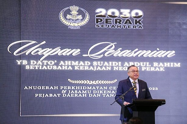 YB Setiausaha Kerajaan Negeri ketika Majlis Penyampaian APC 2023 dan Jasamu Dikenang PDT Kampar.