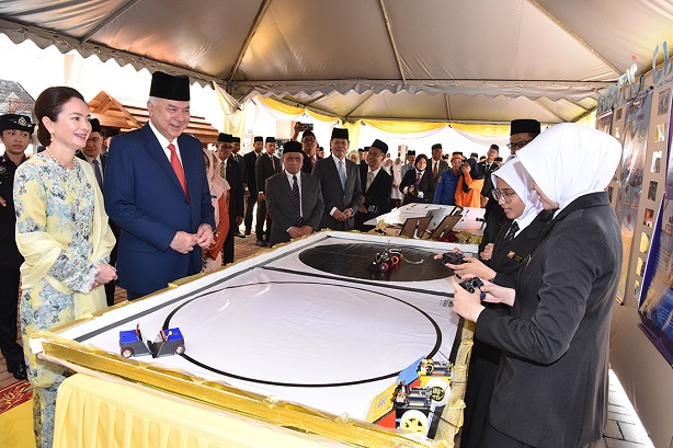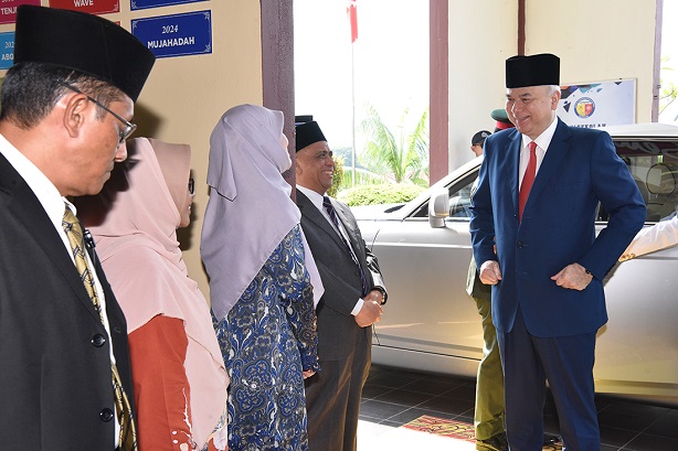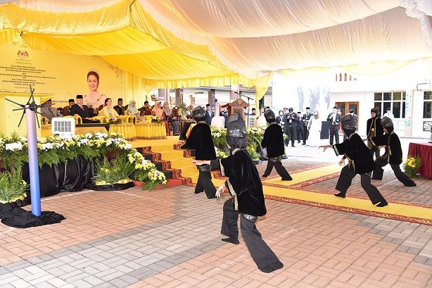 Ketibaan baginda pada jam 11.00 pagi itu telah disambut oleh YAB Menteri Besar Perak, Dato’ Seri Saarani bin Mohamad dan isteri, YABhg. Datin Seri Aezer binti Zubin serta YB Menteri Pendidikan Puan Fadhlina binti Sidek.
