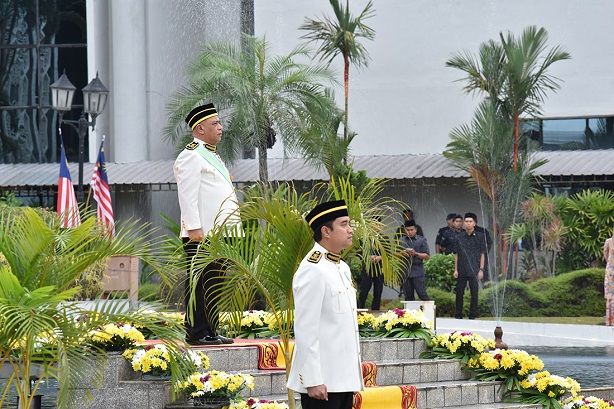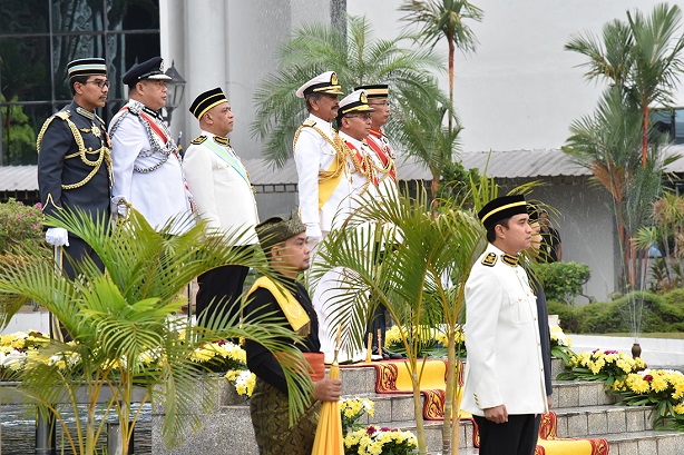 Sebaik selesai, tiupan ‘Rouse’ kemudian dimainkan dan bendera Malaysia dinaikkan semula dengan diikuti lagu kebesaran negeri Perak sebelum kawalan kehormatan keluar perbarisan.