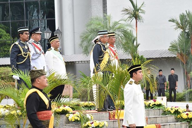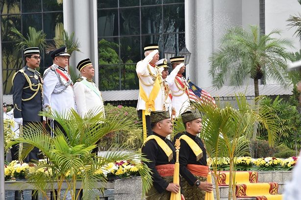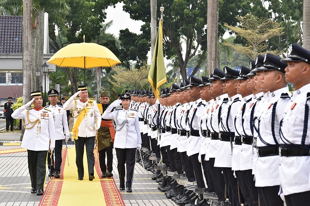 DYMM Paduka Seri Sultan Perak Darul Ridzuan memberi tabik hormat kepada kawalan kehormatan utama.