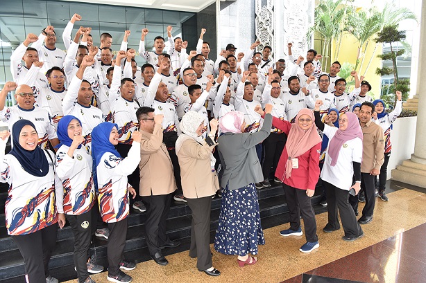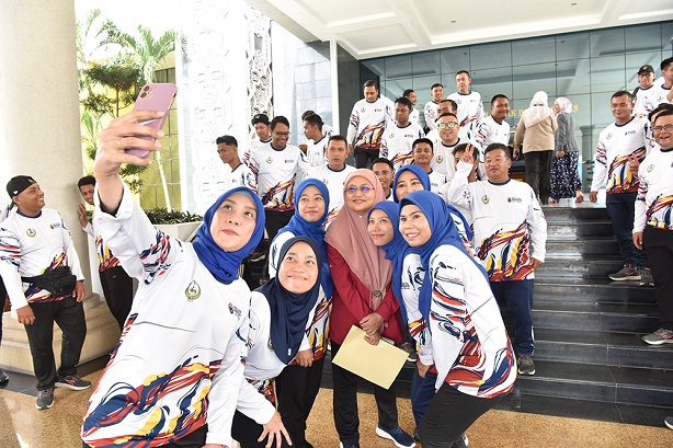 YBhg. Dato' Nor Sham binti Rahman telah menyampaikan baju kontinjen kepada Ketua Kontinjen iaitu Encik Mohamad Nazrin bin Ramli.