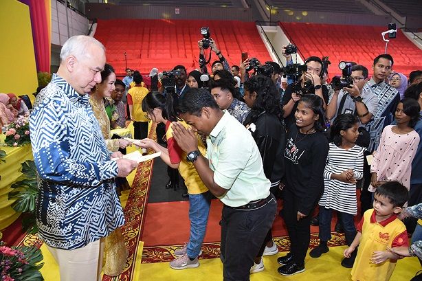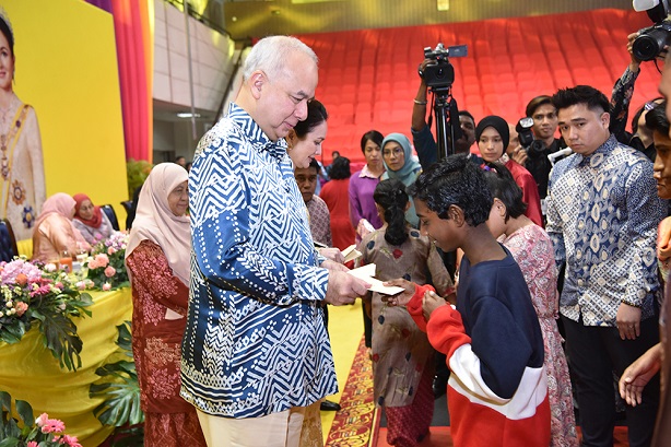 Baginda berdua berkenan menyampaikan sumbangan kepada 67 orang anak yatim di majlis berkenaan