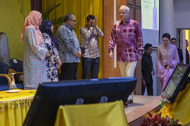 Mengakhiri majlis, baginda berkenan menyempurnakan lafaz dan menandatangani plak sebagai simbolik perasmian seterusnya ke sesi lawatan.