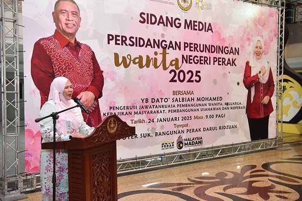 YB Dato’ Salbiah binti Mohamed, Pengerusi Jawatankuasa Pembangunan Wanita, Keluarga, Kebajikan Masyarakat dan Pembangunan Usahawan Negeri mengumumkan perkara tersebut ketika menyempurnakan Sidang Media Pelancaran dan Penyerahan Watikah Ahli Perwakilan Persidangan Perundingan Wanita Perak 2025 di Bangunan Perak Darul Ridzuan.