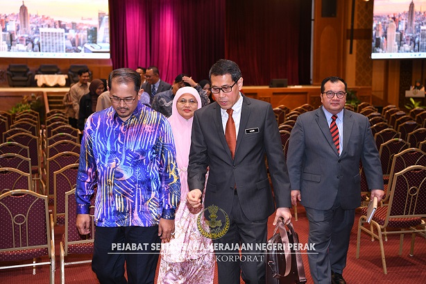Hadir sama, YB Dato' Azmir Shah bin Zainal Abidin, Penasihat Undang-Undang Negeri Perak; YB Dato' Mohd Zaki bin Mahyudin, Pegawai Kewangan Negeri Perak dan Encik Megat Amirul Zaini Jamalulallail bin Megat Jamaludin, Bendahari Negeri Perak.