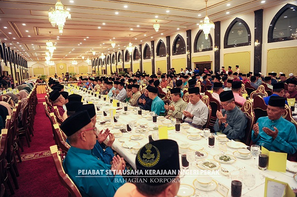 Semua penyerahan zakat perniagaan tersebut disempurnakan sempena Majlis Berbuka Puasa bersama Ahli Majlis Mesyuarat Negeri, Orang Besar Negeri, Ahli Dewan Negara, Ahli Dewan Negeri serta Ketua Jabatan Negeri Perak di Istana Iskandariah, di sini.