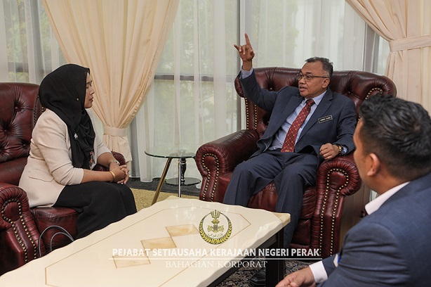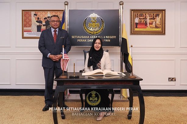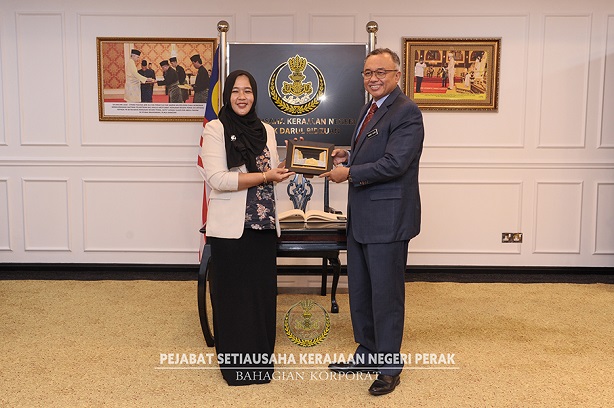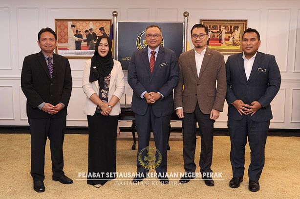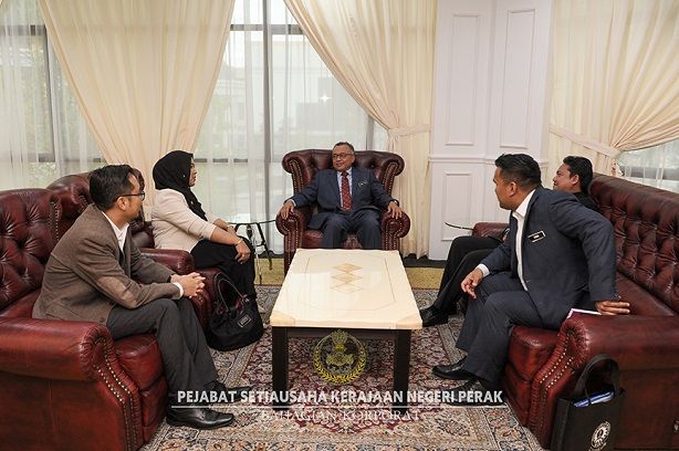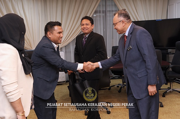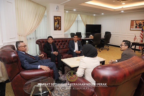 Sesi kunjungan hormat yang berlangsung di Pejabat Setiausaha Kerajaan (PSUK) Negeri Perak itu bertujuan untuk mengadakan perbincangan dua hala berkenaan hala tuju dan usaha kerjasama kedua-dua belah pihak demi pembangunan negeri.