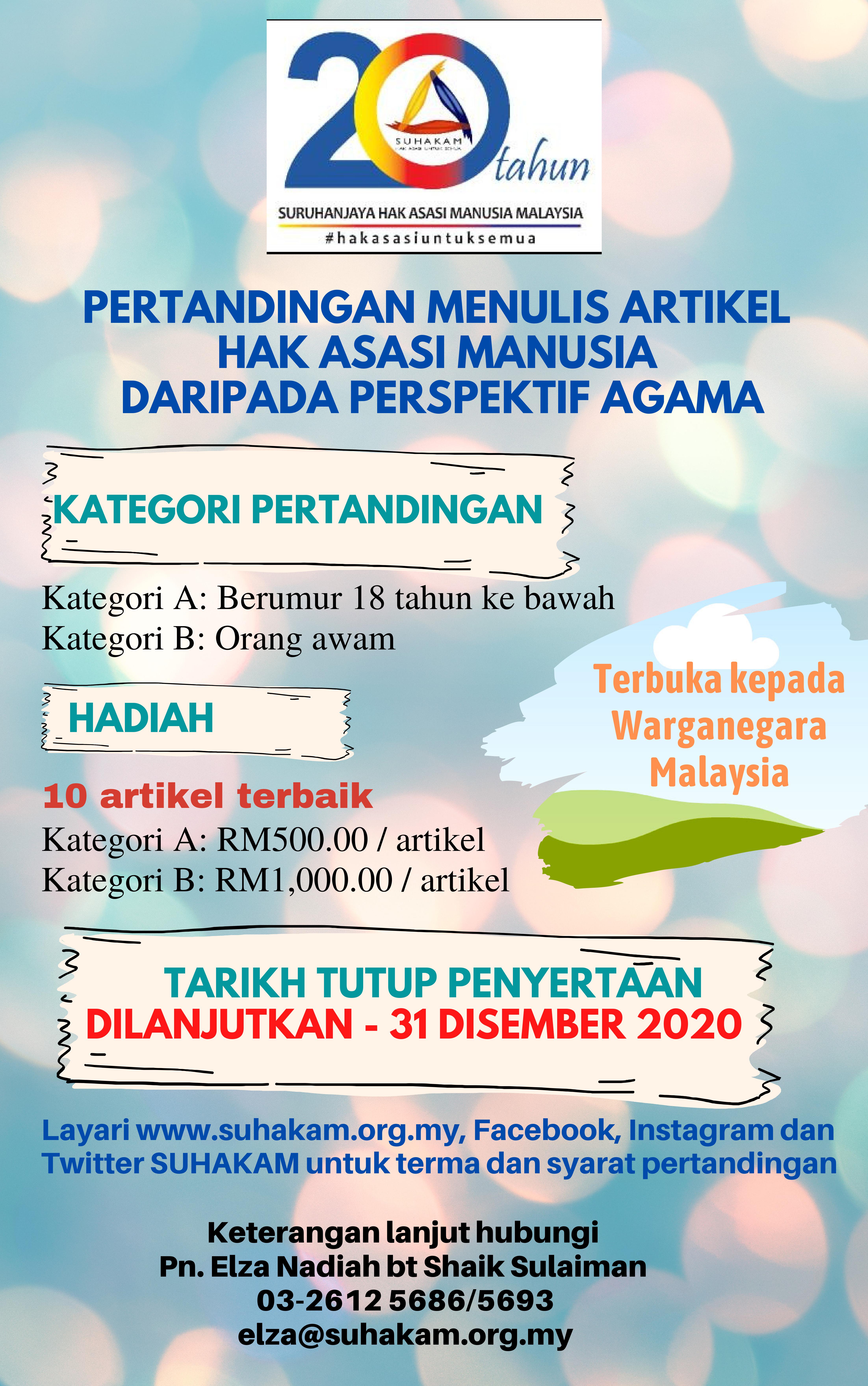 Pertandingan Menulis Artikel Hak Asasi Manusia Daripada Perspektif Agama